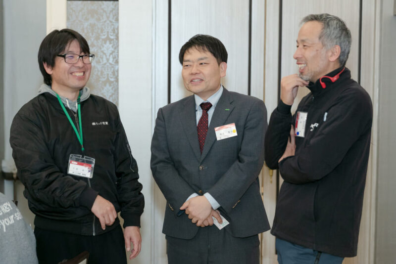 車座になって向き合う商談会。テーブルを囲んで話し合う距離感が、単なる名刺交換で終わらない関係づくりにつながっています。