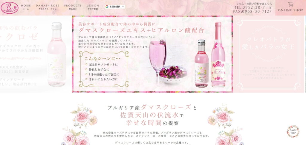 「株式会社ローズテラス」は、バラの価値を生かした製造・卸・小売事業を広く展開する会社で、飲料・食品・コスメ・雑貨なども扱ってあります。